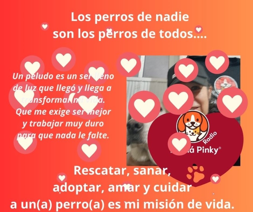Todo lo que aprendí y mi pasión por la radio, las encaucé a mi misión de vida a favor del bienestar animal, con especial énfasis a los peludos de cuatro patas. Para mí los perros son seres llenos de luz, de amor que merecen amor y respeto, dejando de ser lastimados, maltratados o ignorados.